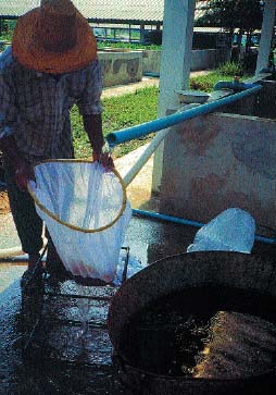 The use of livestock manures as substrates for livefeed organisms such as insect larvae or crustaceans for feeding high-value fish also has potential where land costs prohibit semi-intensive aquaculture. Live feeds can be used as complete diets or to supplement pelleted feeds for fish species such as hybrid Clarias catfish raised in intensive systems (Box 3.H). Such low-tech solutions not only produce fish but also increase the value of the original waste, principally by reducing smell and moisture level.