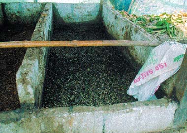Ruminant faecal waste is probably the most commonly used fish pond input in developing countries. In addition to its use in fish culture being limited by competition as a crop fertilizer or fuel, it has an inherent poor quality as a pond input. Wastes from unimproved grazing animals may be too poor in quality to produce acceptable fish yields in small ponds. In an on-farm trial, around 4 tonnes of fresh ruminant manure had to be collected and used to produce only about 20 kg of fish in a backyard 200 m2 pond (Shevgoor et al., 1994). The buffalo manure had low N and P contents and also contained tannins which stained pond water brown, further limiting phytoplankton growth due to reduced light penetration into the water column. Tannins are also known to be toxic to tilapias (Saha and Kaviraj, 1996).