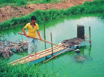 Maggots being produced in manure placed next to fish ponds can be pushed into the water to feed the fish
