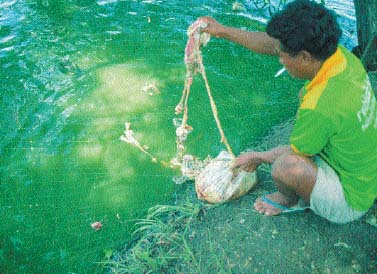 BOX 3.I Chicken slaughter house waste fed to catfish Poultry slaughter house wastes are in great demand for feeding hybrid Clarias catfish (C. macrocephalus x C. gariepinus) in Thailand. The practice has evolved on the back of a booming industry and export of boneless chicken meat in which broilers are processed in-country producing large amounts of by-products. Heads, viscera and thighbones, that constitute about 10 percent of the liveweight of the broiler are the main by-products fed fresh after simple on-farm grinding and mixing with a binder. Food conversion ratios of 4-5 (wet:wet basis) are attained under farm conditions in which yields of the air-breathing hybrid catfish may exceed 100 tonnes. ha-1. Competition to purchase slaughterhouse by-products has resulted in segmentation of the recycling business with wholesalers contracting waste, to further remove meat scraps for human consumption before use of residual waste for catfish feed. Effluents from the fish culture systems are minor as water exchange is minimal and increasingly is pumped into neighbouring ponds in which polycultures of herbivorous fish are raised in fertilized, semi-intensive systems. Source: Little et al. (1994) |