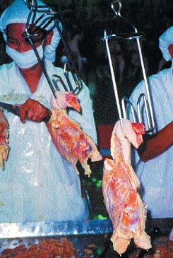Regulation of the size and distribution of processing operations can encourage the recycling of processing wastes through aquaculture. In Thailand, as road and other infrastructure have improved, chicken processing plants are moving away from flood-prone rice growing areas in provinces near Bangkok to the centres of broiler production within maize growing, upland areas. Hybrid catfish farms which utilize much of their wastes, are similarly relocating to these areas (Ingthamjitr, 1997).