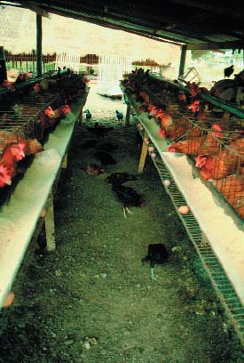 Village chickens scavenging for waste feed within intensive battery egg units may spread disease