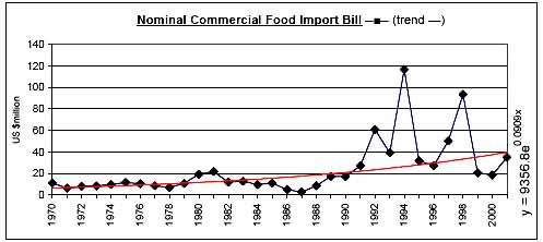Commercial Food Import Bill (US$ 000) |