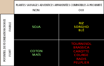 Les scientifiques conviennent généralement que les cultures GM peuvent être à l'origine d'un flux génétique par la transmission de gènes provenant de variétés à pollinisation libre par des cultures locales ou des plantes sauvages apparentées. Étant donné que le flux génétique se produit depuis des millénaires entre les espèces terrestres et les cultures conventionnelles, on peut raisonnablement supposer qu'il intéresse également les cultures transgéniques. La propension et l'aptitude aux croisements extérieurs varie en fonction de la présence de plantes sauvages ou de cultures apparentées sexuellement compatibles, qui varie selon les sites (encadré 23) (CIUS, GM Science Review Panel).