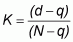 where: d is the overall value for percentage correct; q is the estimate of the chance agreement to the observed percentage correct (these values are calculated using number of cases expected in diagonal cells by chance, and are drawn from some form of contingency table); and N is the total of number of cases.