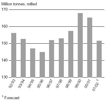 In Latin America and the Caribbean, shipments to Nicaragua have officially been forecast to double to some 60 000 tonnes, consistent with the fall in production expected this year. By contrast, Colombia is expected to cut shipments to some 15 000 tonnes, down from an estimated 100 000 tonnes in 2001. The revision follows the issuance by the government, in January, of a resolution that states the level to be imported during the year, all of which should be sourced in Andean Pact countries. Larger purchases by Cuba and Mexico are expected, while those by Brazil could fall, given the current expectations of increased output in 2002.