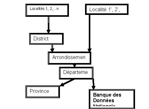 • Risque de pertes de l'information élevé parce que la chaîne de transmission de l'information est très longue avec plus de 5 maillons: localités-District-Arrondissement-Département-Province-Banque de données.