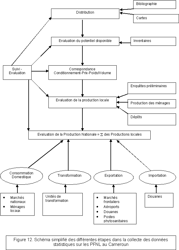 Dans le souci de mieux clarifier la séquence des différentes activités, nous avons tenté de schématiser de façon assez simple les différentes étapes relatives à la collecte des données statistiques sur les PFNL au Cameroun (figure 12).