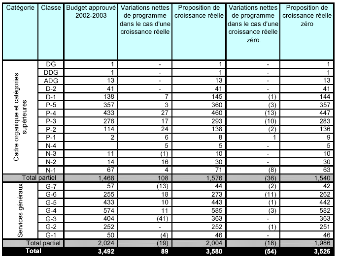 124. Toutefois, l'augmentation de la part des dépenses des activités conjointement financées d'UNSECOORD incombant à la FAO figure également dans cette rubrique. Elle s'élève à 2,1 millions de dollars EU supplémentaires pour atteindre le même résultat, à savoir un environnement sûr et sécurisant pour le personnel de terrain. Toutes les dépenses supplémentaires comme le financement de nouveaux postes de personnels chargés de la sécurité sur le terrain à l'OCD ont été considérés comme une variation du programme dans le cas d'une croissance réelle zéro.