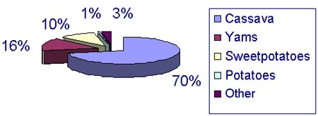 Fig 1: Production of root and tuber crops (in % of the total world production)
