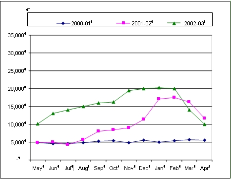 Government actions since the 2001-02 growing season included: (a) declaring an emergency and requesting WFP assistance, (b) facilitating the importation of 46 854 tonnes of maize (of which 19 288 tonnes was brought in through the Food Reserve Agency and 27 666 tonnes through private firms), distributing through WFP channels 31 400 tonnes of cereals through April 2003, and (c) assigning civil servants from various agencies to the National Vulnerability Assessment Committee, chaired by the Disaster Management and Mitigation Unit (DMMU) under the Office of the Vice President. However, Government’s decision in August 2002 to prohibit the distribution of genetically modified maize as relief food, even if milled, resulted in 18 000 tonnes of WFP food stocks having to be removed from the country, and the diversion of 33 000 tonnes that were in the pipeline bound for Zambia. This partially contributed to the eventual reduction by 21percent in WFP’s resourced versus planned tonnages (94 750 tonnes vs. 120 000 tonnes); however, with the Government’s stock included, WFP distributed 126 150 tonnes, thereby slightly exceeding the plan.
