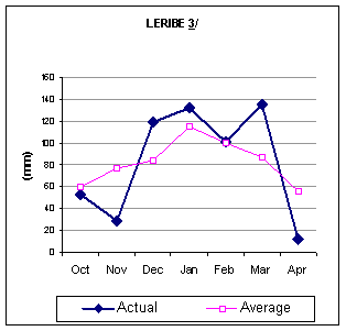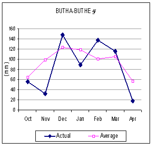 In general, this year the distribution of rains was generally better in the north as compared to the south of the country (Figure 2). The onset of the rains was in October in most areas, which facilitated early land preparation where fields had been ploughed during the winter. This ensured that the optimum planting date for maize and sorghum was achieved where machinery and physical inputs were available. November was a dry month throughout the country with most stations receiving only a third of their normal rainfall, and this resulted in delayed planting operations for farmers. The remainder of the rainy season was erratic and the distribution uneven, particularly in southern districts of the country