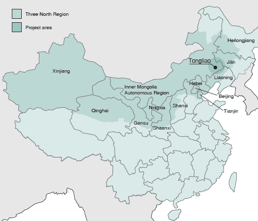 State Forestry Administration of China, Belgium Development Cooperation & FAO. 2002. Afforestation, forestry research, planning and development in the Three-North Region of China (FAO/GCP/CPR/009/BEL) – technical project review document (1990–2002). Tongliao, China.