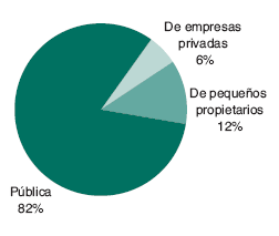 Más de la mitad de las plantaciones de álamos y sauces en sistemas agroforestales y fuera de los bosques son de propiedad pública (Figura 2). No obstante, los pequeños propietarios poseen una parte importante (un cuarto del total).