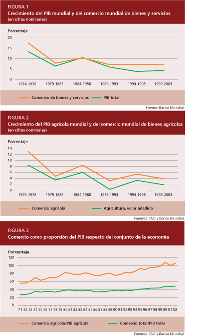 La economía mundial, incluida la agricultura, se está integrando rápidamente a través del comercio. Al mismo tiempo, las exportaciones de los países en desarrollo se están diversificando cada vez más, de manera que esos países dependen menos de las exportaciones agrícolas de lo que dependían con anterioridad. Además, los países en desarrollo se están convirtiendo rápidamente en sus mejores mercados para los productos agrícolas.