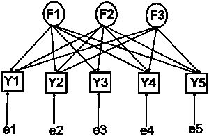 Each observed variable (y) can be expressed as a weighted composite of a set of latent variables (fs) such that