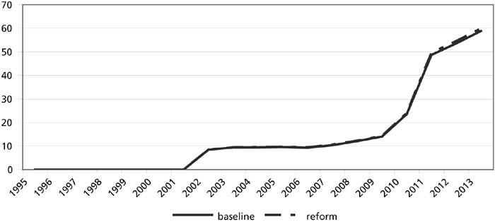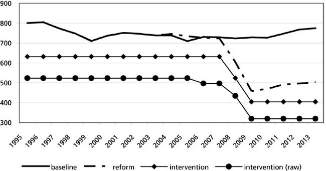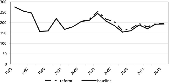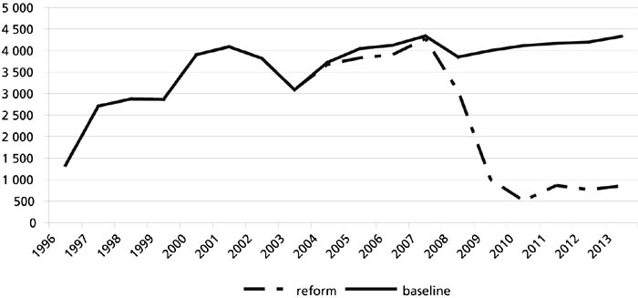 By contrast, the EU domestic market price falls by an average of about 32 percent between 2008 and 2013, slightly less than the reference price (Figure 2), as the transmission of changes from the latter to the former is partial with the market price being determined by other policy provisions and market forces.