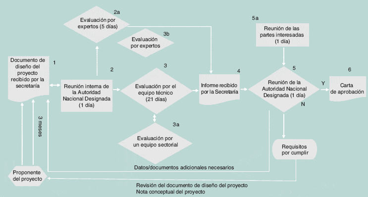 El Ministro de Bosques debe remitir una carta de autorización o recomendación a la Autoridad Nacional Designada señalando que el proyecto del MDL propuesto contribuirá al desarrollo sostenible del sector forestal. No obstante, el trámite en el Ministerio de Bosques no alargará el plazo total establecido para la aprobación de la Autoridad Nacional Designada, dado que parte de la selección del proyecto la habrá realizado el ministerio (Figura 3). Por otra parte, como la nota conceptual del proyecto debe incluir muchos aspectos que se abordarán en el documento de diseño del proyecto, este procedimiento reducirá, de hecho, el volumen de trabajo necesario para preparar dicho documento.