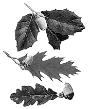 Oak trees are divided into white and red families. Acorns on white oaks mature in one year, so unfavourable conditions during the flowering or growing season affect that year’s crop. Red oak acorns take two years to mature, so the results of bad conditions are not apparent until the following year. (Source: Jim Low, Kansas City infoZine [United States], 21 November 2005.)