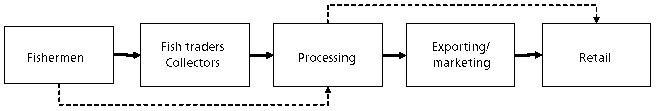 The value chain for the Tanzanian Lake Victoria Nile perch fishery, exported to the European Union, is split into five different segments; fishing, fish buyers/collectors (on shore collectors), processors, exporters and the EU retail market, as shown in Figure 16.