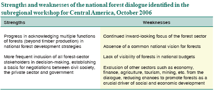 Participants noted that to strengthen the NFP processes in the countries, there was a need to advance on issues such as dialogue with other sectors, capacity development for stakeholders in decentralized organizations, better participation of civil society, integration of the forest sector in national development and poverty reduction strategies, development of innovative financing strategies for sustainable forest management, and coordination between actions at the national level and decisions taken in international and regional fora.