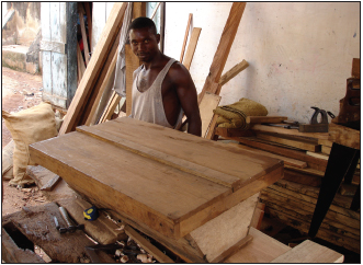 | Une petite entreprise fabrique des ruches pour le marché local au Ghana: les petites entreprises forestières peuvent se trouver isolées des infrastructures et des services de soutien |