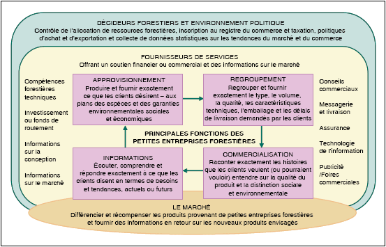 | Principales fonctions des entreprises forestières et leurs liens avec les responsables des politiques, les fournisseurs de services et les marchés qui améliorent leurs perspectives |