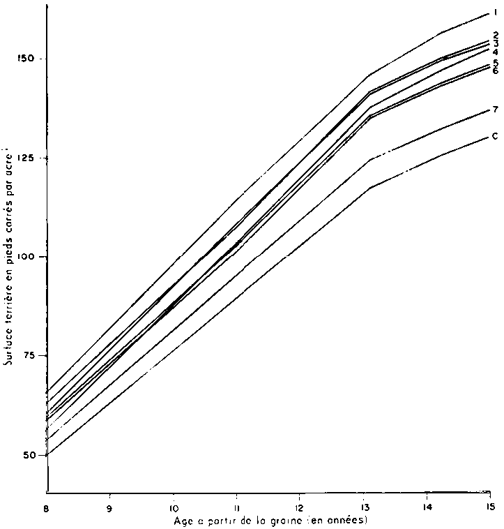Le rendement biologique d'une forêt commerciale dépend de la capacité inhérente d'accroissement du matériel génétique cultivé et du milieu. Parmi les caractéristiques inhérentes susceptibles d'affecter le rendement de la production organique totale figurent la superficie et l'exposition de la feuille, l'activité de photosynthèse, le rythme de croissance, les habitudes d'enracinement, le potentiel de taille définitive, la santé de la plante et ses réactions aux variations de densité du peuplement (Kozlowski, 1962; Black, 1966; Wareing, 1966; Dietrichson, 1969).
