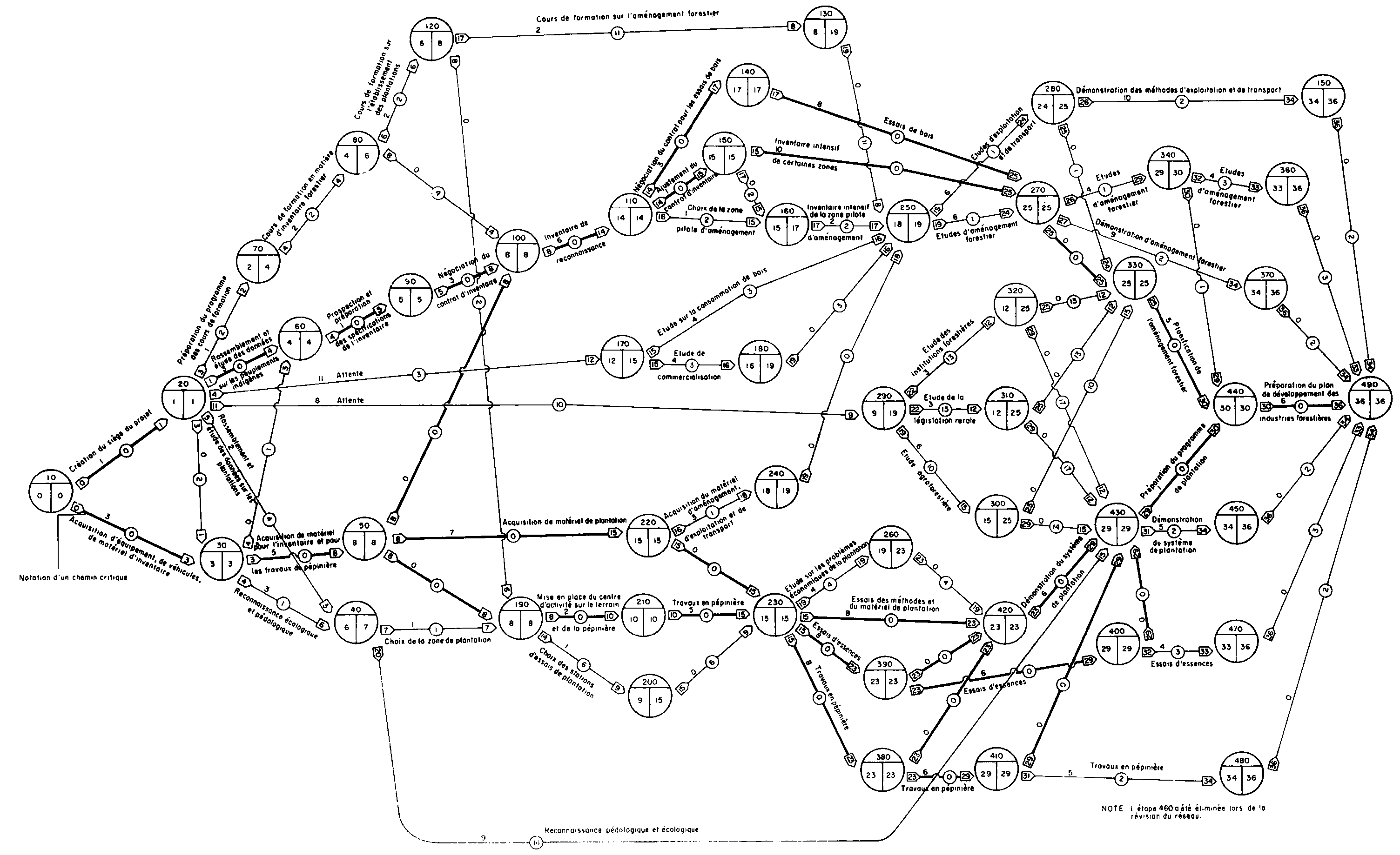 Utilisée tout d'abord pour la Défense nationale, l'analyse de réseau a rapidement été appliquée aux projets de construction, où elle a permis des économies substantielles de temps et d'argent. Le recours à cet instrument de gestion pour les projets forestiers est de date récente (Davis, 1968; Husch, 1969).