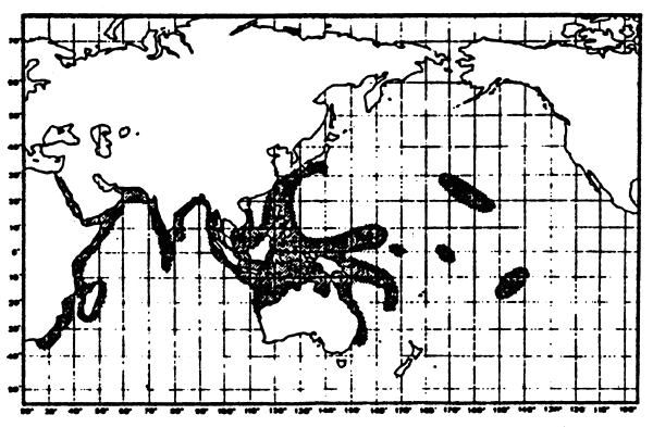 Geographical Distribution: Throughout the warm waters of the Indo-West Pacific, including oceanic islands and archipelagos. A few stray specimens have been collected in the eastern tropical Pacific.