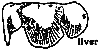 | Diagnostic Features: A large species, deepest at a more posterior point than in other tunas (at, or only slightly anterior to, second dorsal fin rather than near middle of first dorsal fin base). Gillrakers 25 to 31 on first arch. Second dorsal fin clearly lower than first dorsal; pectoral fins remarkably long, usually 30% of fork length or longer in 50 cm or longer fish, reaching well beyond origin of second dorsal fin (usually up to second dorsal finlet). Fish smaller than 50 cm will have proportionately smaller pectorals than other tunas, i.e. T. obesus. Ventral surface of liver striated (vascular network). Swim- bladder present, but poorly developed and not evident in fish smaller than about 50 cm fork length. Vertebrae 18 precaudal plus 21 caudal. Colour: a faint lateral iridescent blue band runs along sides in live fish; first dorsal fin deep yellow, second dorsal and anal fins light yellow, anal finlets dark; posterior margin of caudal fin white. | ![]() liver |
