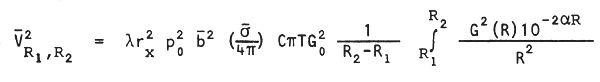 | where, | 2R1,R2 | = | the average squared voltage for the depth layer from R1 - R2 |