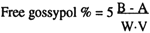 | Where: | A = mg of free gossypol appearing in aliquot (a) |