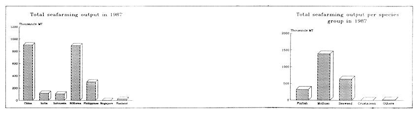 The data used in this atlas refer only to the output from seafarming activities, unless otherwise stated in the text. All the charts in the atlas were prepared using only the data from the seven countries. Each of the species data sheet is self-contained, and as such, some repetition of the description of the culture techniques cannot be avoided.