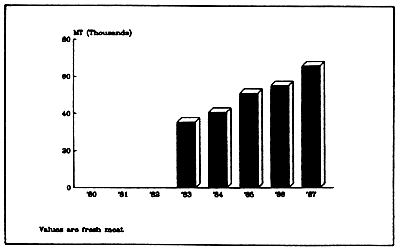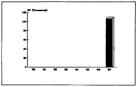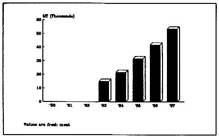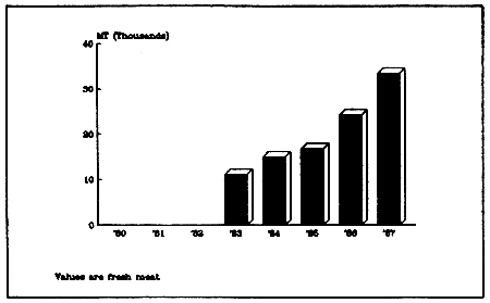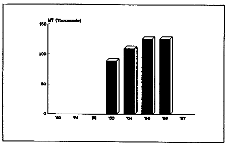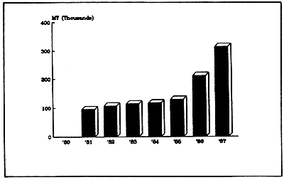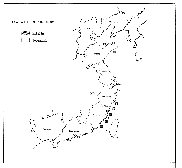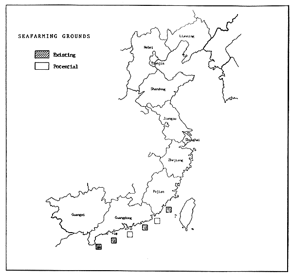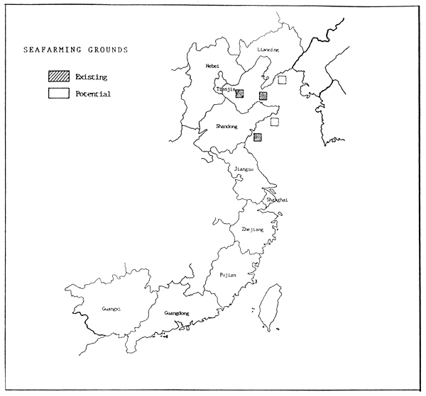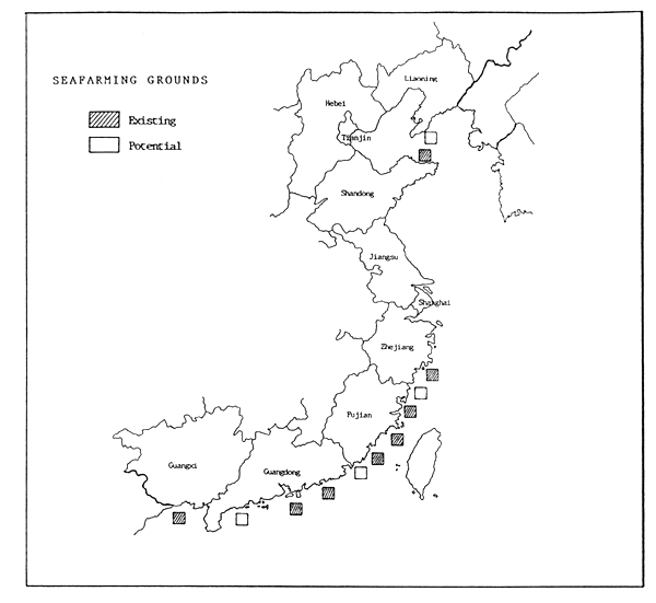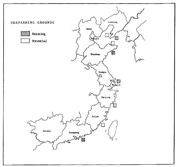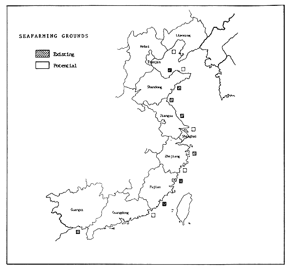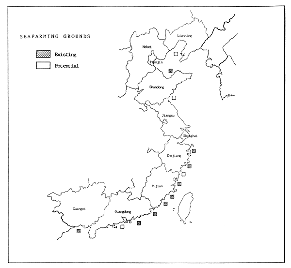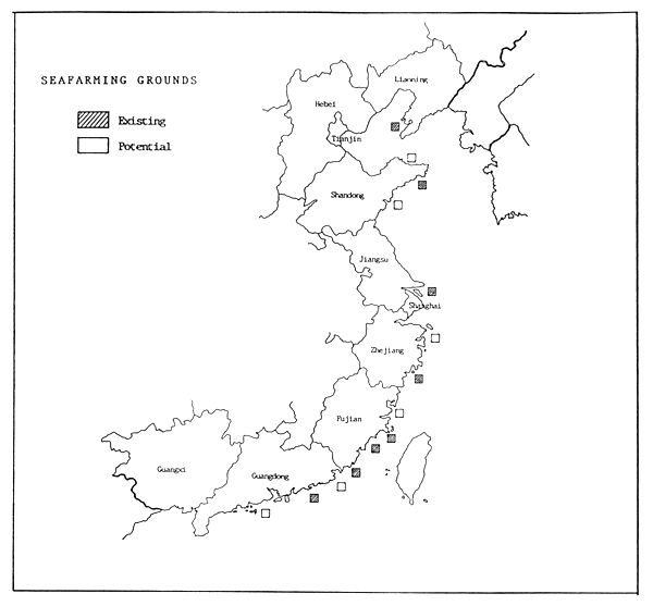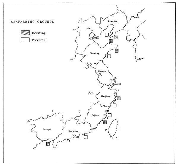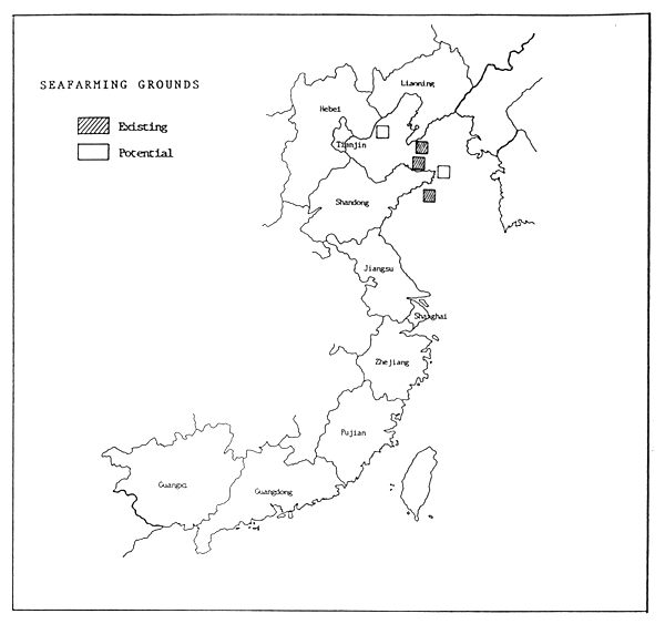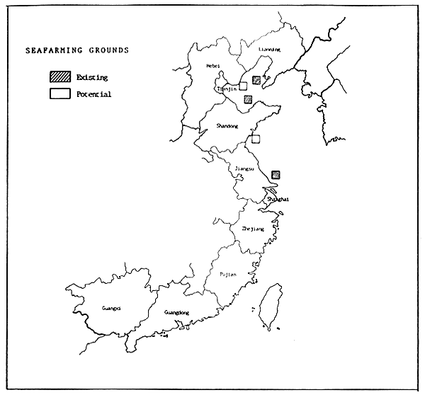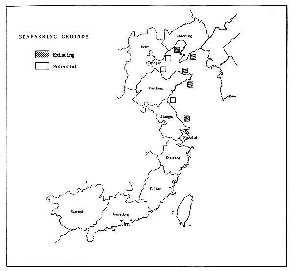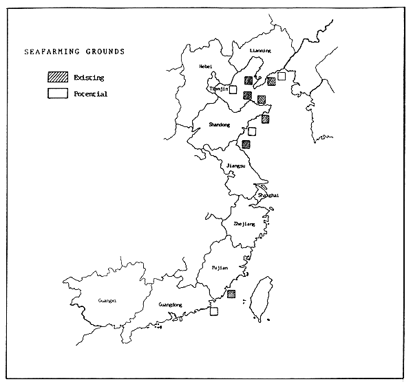 Scallop seafarming started almost 10 years ago following the success in artificial rearing of spat in controlled conditions. At present, there are about 3,500 hectares of culture area and, in 1988 the production was 121,991 MT, a considerable increase over the previous years. There are two species mainly cultured in China: Chlamys farreri and the bay scallop Argopecten irradians. Scallops are mainly cultivated in the northern provinces of China, particularly in Liaoning and Shandong. On the contrary, scallop culture in the southern provinces has not yet developed, possibly due to unfavorable environmental conditions.