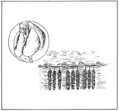 Hard clams are cultured in areas where the bottom is composed of fine sand or a mixture of sand and mud. In order to avoid losses from undesirable weather, such as storms, culture sites are selected in sheltered areas. Chinese fishermen usually purchase the young clams (5–10 mm in shell length) from spat collectors in spring and transplant them immediately in the carefully prepared culture grounds. Although the clams are sessile organisms they tend to move considerably from the site where they are originally sown. For this reason, it is common practice to erect a net wall 20–30 cm in height around the culture site, in order to prevent the clams from escaping or being washed away. Although this measure successfully retains the clams in the area, fishermen must regularly inspect the net to thin the hard clams which have piled around the base of the net itself. The hard clams reach the marketable size of 5–8 cm in 2–2.5 years and production per square meter ranges between 2–4 kg. Total culture output in 1987 was 53,389 MT. One major constraint to the further expansion of this seafarming activity is the limited and often unreliable seed supply.