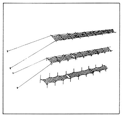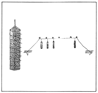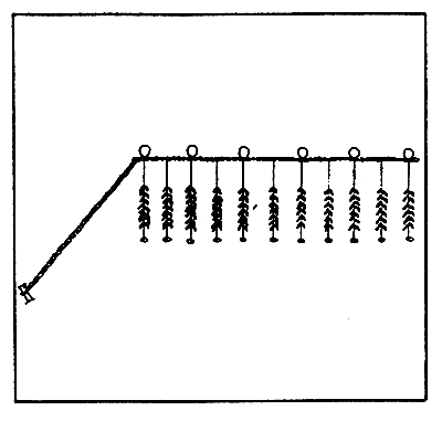 The basic culture unit for Laminaria cultivation consists of a long-line buoyed with numerous floats and anchored at both ends. The line is usually strong and made of durable, non-corrosive synthetic fibre, such as nylon, about 2.0–2.5 cm in diameter. A floating line is typically 45–55 m long. In less exposed areas the line may be 55–65 or even 70 m in length, whereas in very exposed regions, length may be shortened to 30–45 m. Laminaria seedling plants are attached to ropes (known as culture ropes) for the grow-out phase. The culture ropes are usually between 1.5–3.0 m in length and are suspended from the long-line 50–100 cm apart. Glass floats 25–30 cm in diameter are used to buoy the long-lines however large plastic floats are often used as alternative. There are various kind of long-line systems, however the most commonly used are the single and multi-line. The single line is an independently positioned unit, i.e. it is not joined to other lines. A multiline unit is usually composed of 10–40 floating lines joined in a parallel fashion. The parallel lines are positioned 3–5 m apart to allow adequate water circulation and avoid tangling of the mature kelp plants.