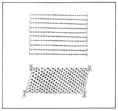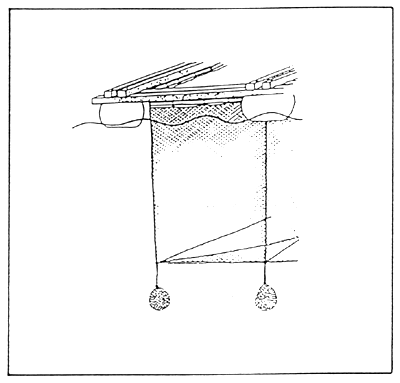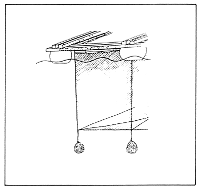 The net method makes use of a rectangular net measuring 2.5 × 5 m with a diagonal mesh work having a 25 cm bar length. The nets are installed horizontally with respect to the sea bottom. The corners of this net sheet are provided with loops which serve to fix the net to the bottom. Eucheuma seedlings are tied in the net intersections using soft plastic straus. In the floating bamboo method a net sheet is fixed to a bamboo framework usually measuring 2.5 × 5 m. Each corner of the floating bamboo frame is tied to the bottom by a loose rope. The widely practiced bottom monoline method is cheap to establish, easy to maintain and not prone to surface weather conditions. This method consists of modules usually of 28 monolines each measuring 10 m long. About 36 plants are tied on a monoline. With all the above method, healthy and strong seedlings are always selected. Eucheuma are harvested when they reach a weight of 750–850 g. Harvesting is often practiced during the periodic maintenance activities.