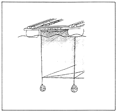 Milkfish are widely cultured in brackishwater fishponds and freshwater pens. However, floating netcages are also being used for broodstock management and maturation. Netcage culture in the Philippines is not yet a well established or developed culture technique. A floating netcage farm consists of a number of interlocked cages suspended in a bamboo and/or wooden frame. The farm is either kept afloat by a bamboo raft or styrofoam floats, and it is held in place by heavy anchors. The netcages are of different sizes with netting of different mesh sizes. Hapa cages are made of fine mesh net and are used to rear fry to fingerling size. Nursery cages are used to culture fingerlings up to 15–20 cm, while in the grow-out cages the fish attain the marketable size. A grow-out cage commonly measures 2×2×2 m. Pen culture of milkfish is widely practiced, particularly in Laguna de Bay near Manila. No artificial diet has yet been developed, however commercial fertilizers are regularly used to enhance plankton growth on which milkfish feed on.