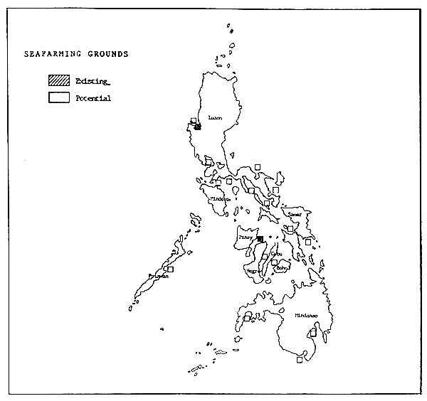 Grouper culture in the Philippines is a newly introduced practice. It has been known to exist in some brackishwater fish ponds in Bulacan before 1985 and has since gained interest as a result of the high market price of groupers. Recently a considerable number of netcages has been set up in bays and coves particularly in Lingayen Gulf and Pangasinan. A well defined culture technology however, has not yet been established and feed development remains one of the major constraints to the expansion of this seafarming practice.