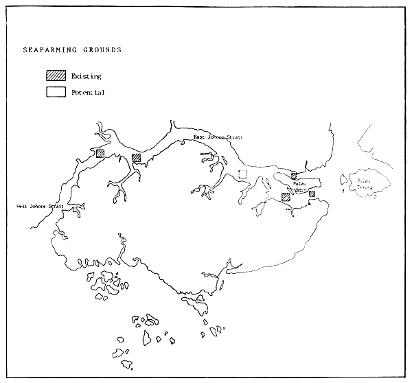 Coastal seafarming started in 1970 and originated from palisade trapping (kelongs) where fish got captured with lift nets. Snapper specimens which were of commercial size were sold immediately, while under-sized ones were stocked into fixed holding cages suspended from the kelongs or by floating wooden frames. These fish were raised to marketable size on trash fish trapped in the kelongs. Since the implementation of the Marine Fish Farming Scheme in 1981, aquaculture techniques have improved and larger and more sophisticated floating netcages came into operation. Production in 1987 was 35 MT.