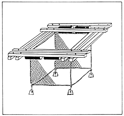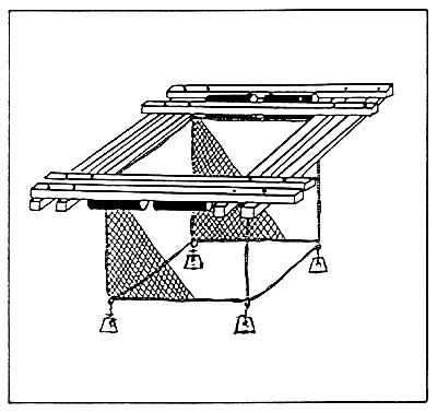 The spiny lobster is cultured in floating netcages similar to the ones used for finfish culture. A floating netcage is made of a simple wooden frame kept afloat by plastic buoys. Netcages vary in dimension, however typical ones measure 2×2×2 m, 3×3×2-3 m or 5×5×2-3 m. Most nettings are made of synthetic fibres as they are relatively easy to handle, install and remove. Synthetic fibres are also preferred over artificial ones (e.g. cotton) because of their durability and strength. Polyamide and polyethylene netting are readily available. The latter material is usually preferred because it is cheaper and protects better against damage caused by crabs and fish. Due to biofouling (e.g. barnacles, tunicates, algae, etc.) the netcages have to be regularly changed. Wild-caught juvenile lobsters with mean body weight of about 100 grams are stocked at 15/cu m (30/m2). The marketable size of 250–300 grams is attained in 3–4 months. Production per cubic meter is around 45 kilogrammes. The lobsters are fed daily on chopped trash fish and mussels.