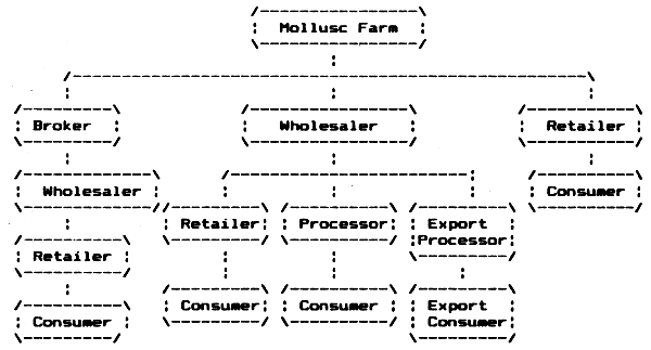 The distribution channels of shellfish in the Philipines are similar to those of other fish products. The diagram below shows the flow of goods from the farm to the consumer.