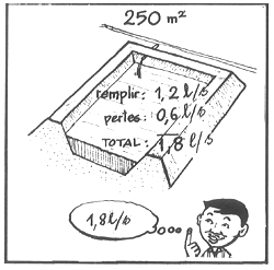 ![]() | Pour un étang irrégulier, le calcul du volume est plus