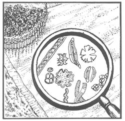 ![]() | Les bactéries ont une taille de quelques microns (0,001 mm), elles vivent librement ou agglomérées les unes aux autres. Elles peuvent flotter dans la masse d'eau, se trouver fixées sur des particules ou encore dans le fond de l'étang. Elles se retrouvent donc partout et peuvent se multiplier très vite si les conditions sont favorables, leur nombre peut doubler chaque heure. |