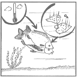 environnementales. Dans l'eau, que ce soit en eau libre ou en élévage, les agents pathogènes existent dans un état latent et vivent en équilibre avec les poissons. En cas de déséquilibre de l'environnement, les agents pathogènes peuvent se développer rapidement et quand ils ont atteint des concentrations élevées, ils peuvent nuire aux poissons. Certaines espèces présentent des résistances spécifiques à certaines maladies. |