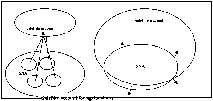 The satellite accounts of the SNA can be classified into articulation of the details of the existing framework or expansion of the framework. The agribusiness satellite account will fall under the first category. The current framework will be articulated in detail to highlight the stock of resources and the various transactions related to agribusiness. The satellite account will take on the various elements of the SNA framework and apply them specifically to institutions, assets, transactions related to agribusiness.