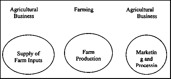 The Oxford Dictionary defines business as trade or commerce and agriculture as farming and livestock. The meaning and use of these words have now been expanded to suit recent economic developments. Business has now been widely used to mean production activity for the market and agriculture to mean the economic activity covering crops, livestock, fishery and even forestry.