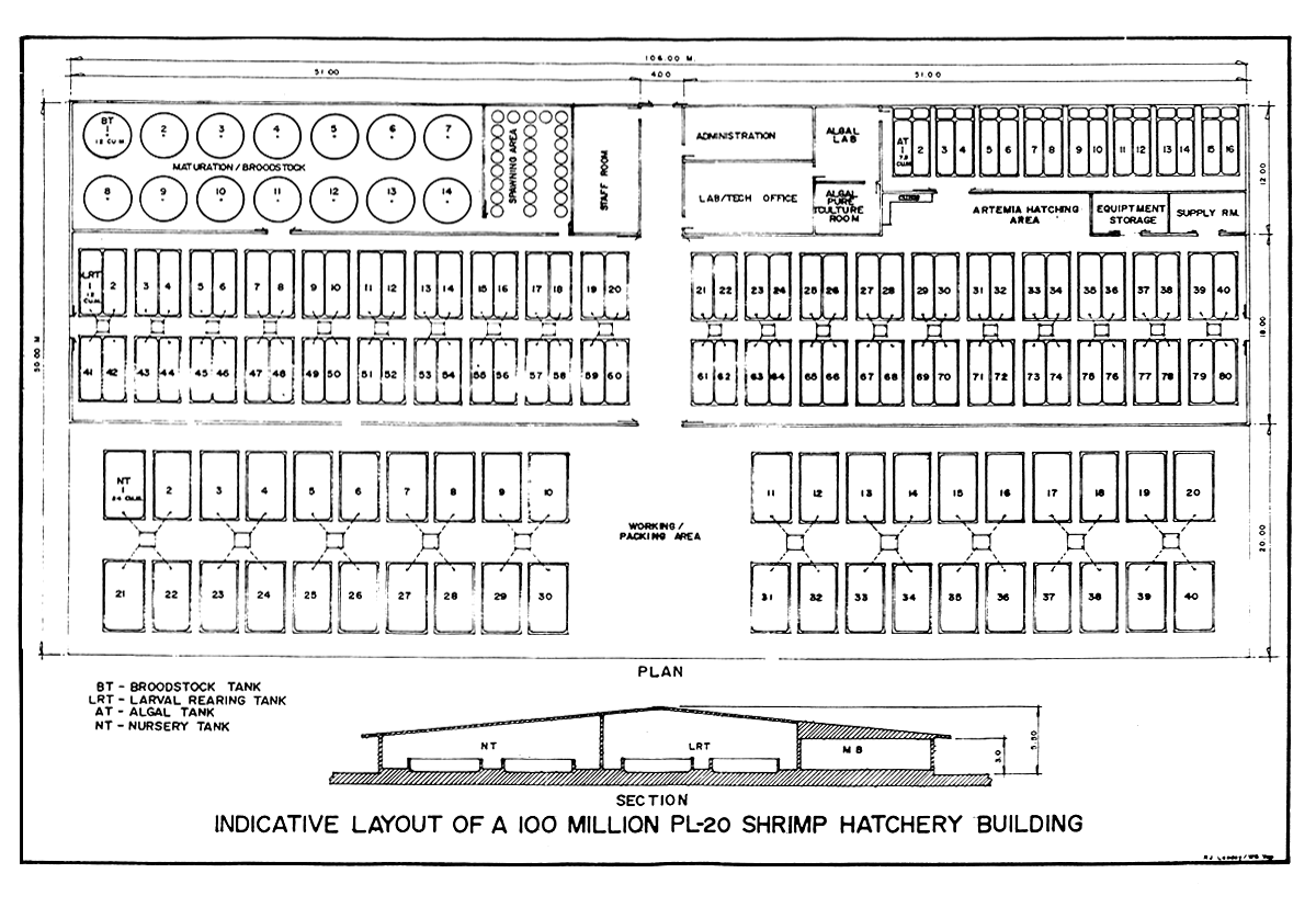 Indicative of Layout of a 100 Million PL-20 Shrimp Hatchery Building.