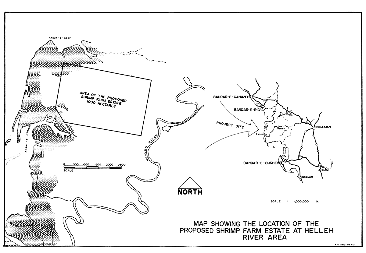 Map showing Location of the Proposed Shrimp Farm Estate at Helleh River Area, Bushehr